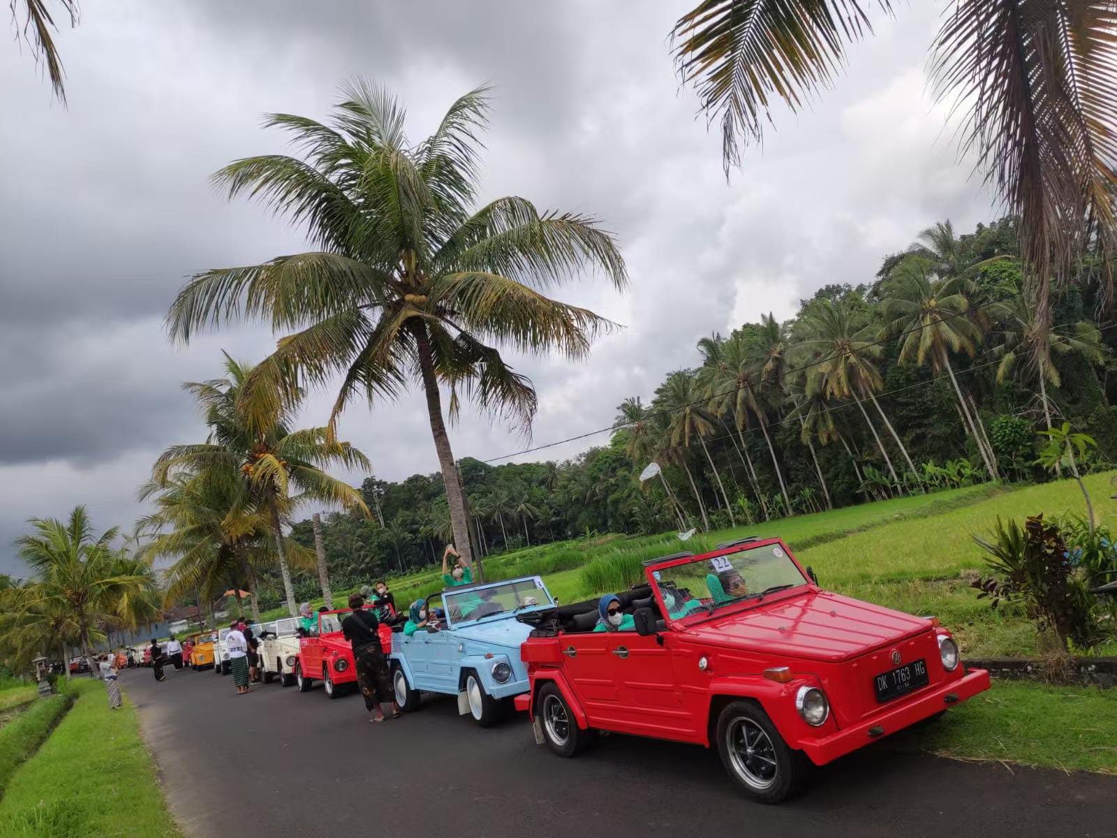 漫遊烏布時光,不只是用雙腳去感受藝術與靜謐,還可以選擇一種更有情調的方式——搭乘一台色彩繽紛的 VW 復古敞篷車,展開一段緩慢而詩意的旅程。坐上這台有著懷舊靈魂的老車,敞開頂篷,讓陽光與微風灑滿肩頭。沿途是層層疊疊的稻田、搖曳生姿的椰林與純樸寧靜的村落風光。穿越蜿蜒的鄉間小道,遠離塵囂,時間彷彿也慢了下來——每一眼,都是一格電影裡的風景。