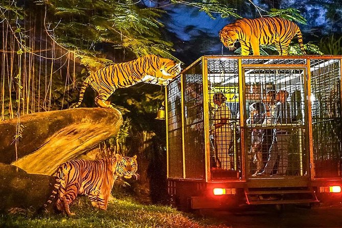 夜間動物園Night Safari|峇里島最驚奇的夜間冒險 在黑夜中展開一場前所未有的野生動物探險! 巴厘塔曼野生動物園 Night Safari 每日開放,帶您近距離接觸斑馬、大象、長頸鹿,甚至與獅子與老虎在夜色中零距離相遇。 當叢林之王從黑暗中悄然現身,您幾乎能感受到牠溫熱的鼻息——刺激、震撼,難以忘懷。這將會是您在峇里最野性、最難得的夜晚體驗!