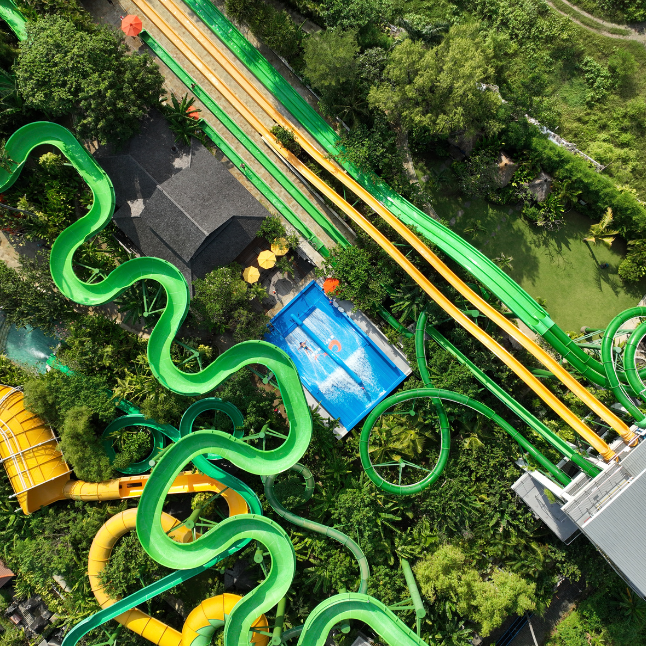WaterbomWaterbom Bali 提供從心跳加速的高空滑道到放鬆漂流的舒適體驗,並兼顧環保與園區管理。無論是親子遊、好友歡聚,或是在峇里放鬆度假,都能在這裡找到屬於你的快樂時光。如果你來庫塔,一定要把這裡列入行程!