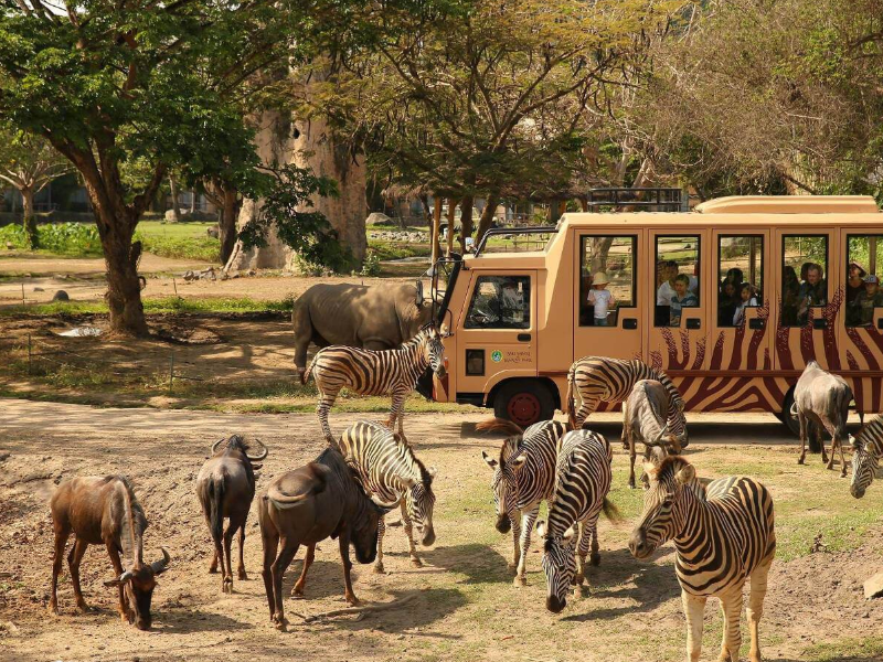BALI SAFARI 野生動物園【野生動物園】Bali Safari & Marine Park 佔地超過40公頃,整個公園就是一片大草原、森林和沼澤地。園內有超過400隻來自印度、非洲及印尼當地高達60多個品種的動物,像是印度的梅花鹿、山羊和羚羊,非洲的獵豹、斑馬、劍羚和紅牛,以及本地蘇門答臘的老虎和貘、爪哇的大象、加里曼丹的鱷魚、蘇拉威西的豬鹿等。不同於您參觀動物園的經驗,這裡的動物可全部都是野生飼養的,搭上斑馬條紋的彩繪遊園專車,來趟原始的「叢林歷險記」,和獅子老虎隔窗相望,和黑熊四目相對,甚至過橋涉水,都頗有《侏儸紀公園》的氣氛,看著各種動物四處出沒興奮大喊,但請記得~可千萬不要把車窗搖下來唷!參觀完野生園區,您也可以參加大象遊行或騎小馬、駱駝,更可和像貓兒一般乖順的小老虎及黏人的猩猩一起拍照,留下難忘的回憶!