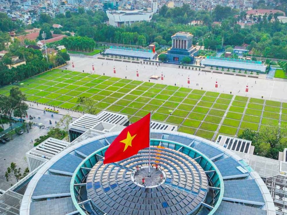 廣場地勢開闊,綠草如毯,中央的旗桿高高聳立,每天清晨與傍晚都會舉行隆重的升降旗儀式,吸引許多旅客與當地居民前來觀禮。面向廣場的是莊嚴的胡志明陵寢,以灰色花崗岩建造,象徵著沉穩與敬仰;周邊還分布主席府、胡志明博物館等重要建築,使整個區域宛如越南政治與文化的核心。