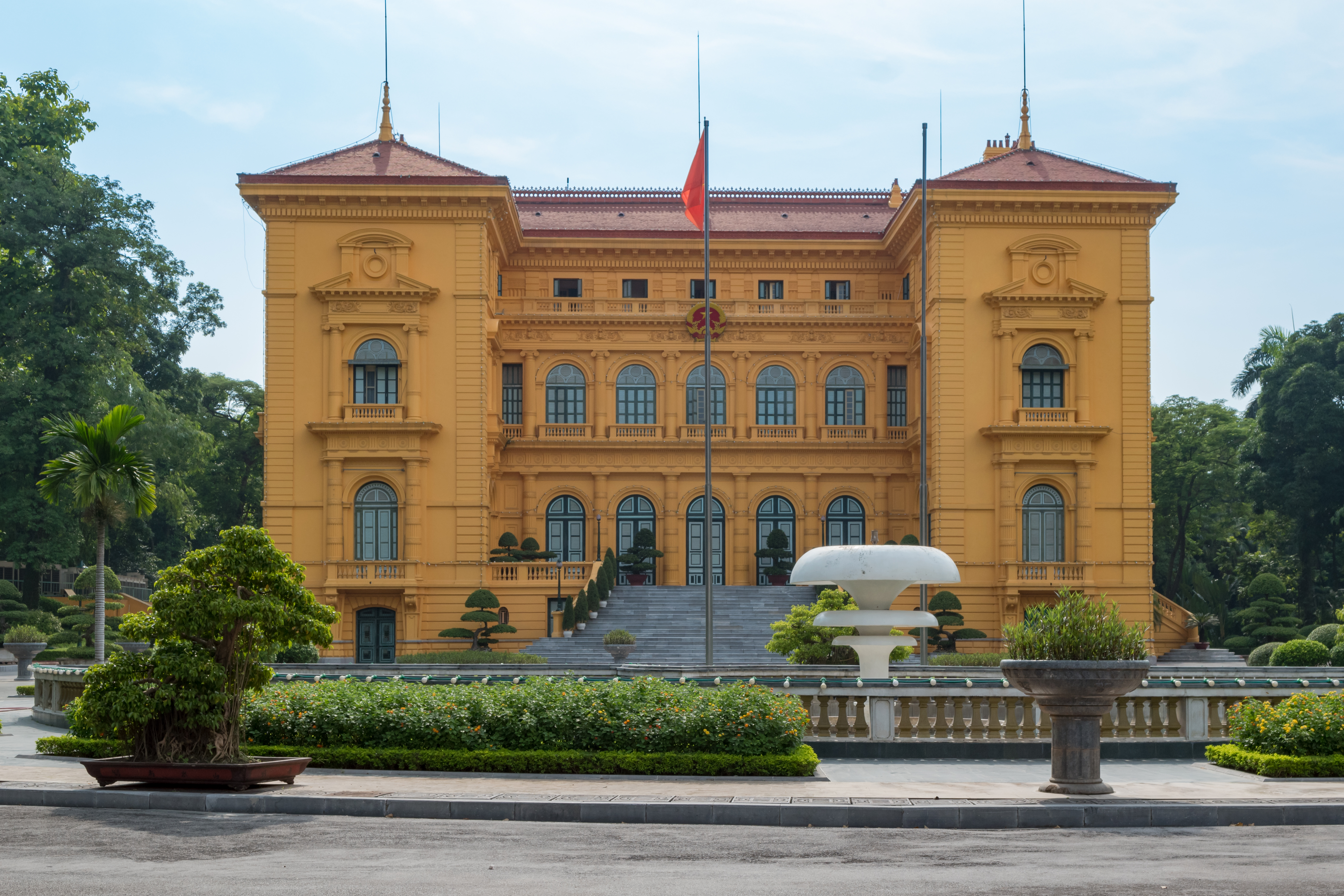 又稱為主席府,建於西元1906年的法式建築,鐵藝大門、古典列柱,是一座純粹歐洲風格的黃色建築,原是殖民時期印度支那的總督府,後改為胡志明主席處理國政之處。