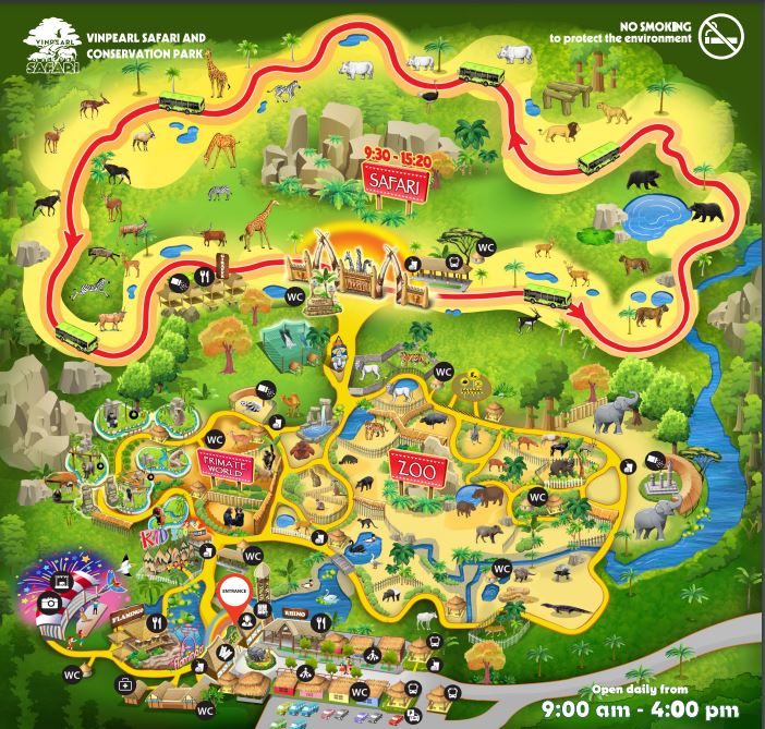 開放時間: Vinpearl Safari 每天開放,通常從上午9:00 開放至下午5:00,具體開放時間可能隨季節或特殊活動有所改變,建議提前查詢官方資訊。