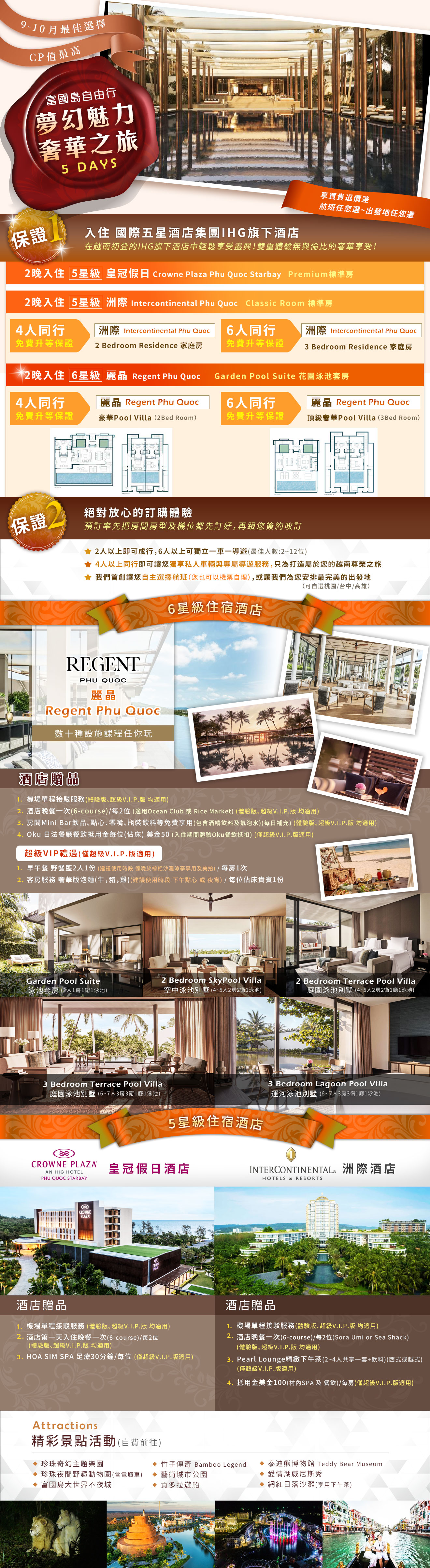5日度假 5星 皇冠+6星麗晶 29900起 34800起 35800起 38800起