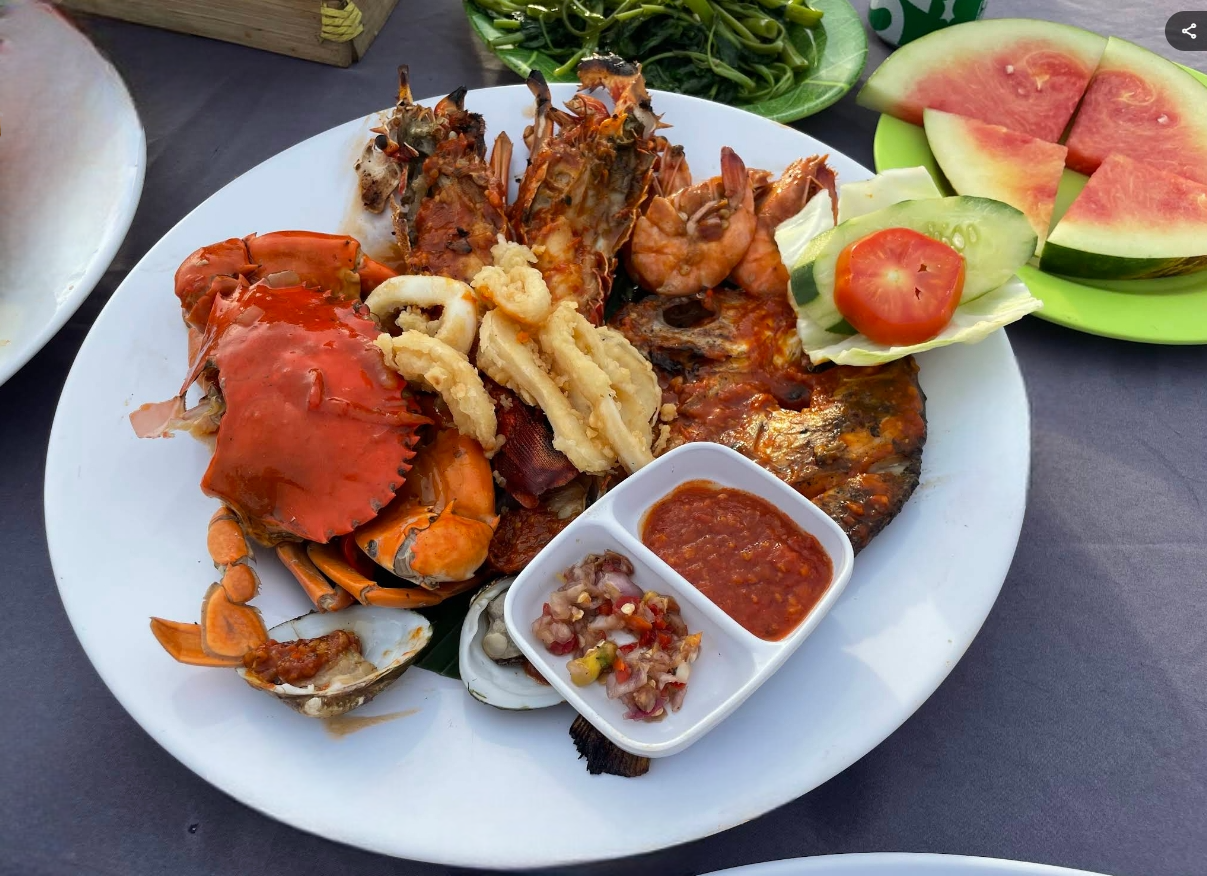在 Aroma Restaurant,每一道料理從海洋直送餐桌,當日現撈的龍蝦、鮮魚、蝦、魷魚、螃蟹與蛤蠣,餐廳用炭烤方式與調味風格。搭配清爽沁涼的鮮榨椰子水與在地特色醬料,感受海風、炭香與海味交織的純粹美好。 炭烤魚類 更是亮點選擇,無論是鮮嫩多汁的 龍利魚(Grouper),或是油脂豐富的 鮪魚下巴,皆以炭火慢烤,完美鎖住魚肉鮮甜。若份量較大或烤得微乾,建議搭配經典酸辣醬提味,鹹香酸爽相得益彰,讓整體口感更加平衡。 在夕陽下的海灘餐桌,搭配這份現烤海味盛宴,盡享味覺與風景雙重享受。