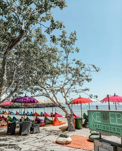 這家位於峇里島 Nusa Dua ITDC 區域的餐廳,倚海而建,擁有無與倫比的海景,成為許多旅人心中的夢幻打卡地。外觀簡樸低調,未曾浮誇,但一步踏入,便能感受到其別具一格的設計與浪漫氛圍,仿佛進入了一處隱秘的世外桃源。 餐廳提供室內與室外座位,無論是柔和的室內燈光還是悠閒的戶外座位,都能讓人感受到舒適與放鬆。戶外區特別設有繽紛的豆袋椅與泳池旁的用餐區,既可享受美食,也能拍下每一刻的美麗回憶。當夜幕降臨,燈光緩緩點亮,整個環境更添一份浪漫與詩意,彷彿時間在此凝固,成為一場無聲的夢。
