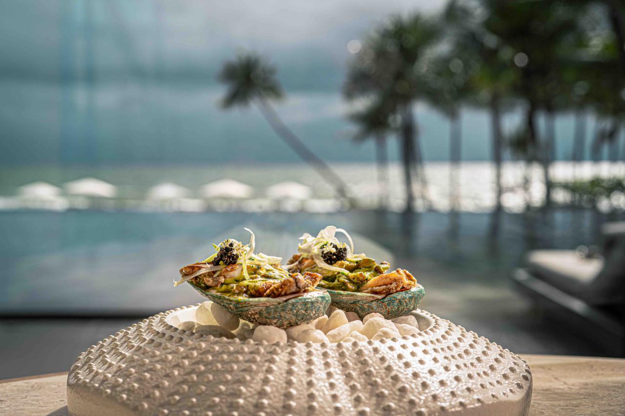 Ocean Club 餐廳以現代熱帶度假風格呈現,注重室內與戶外的融合設計。餐廳的氛圍輕鬆愉悅,並充分利用自然光,使顧客能在舒適的環境中用餐。