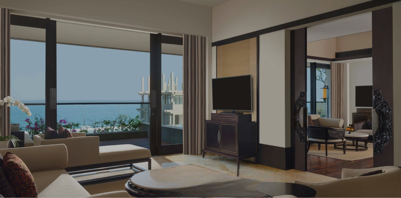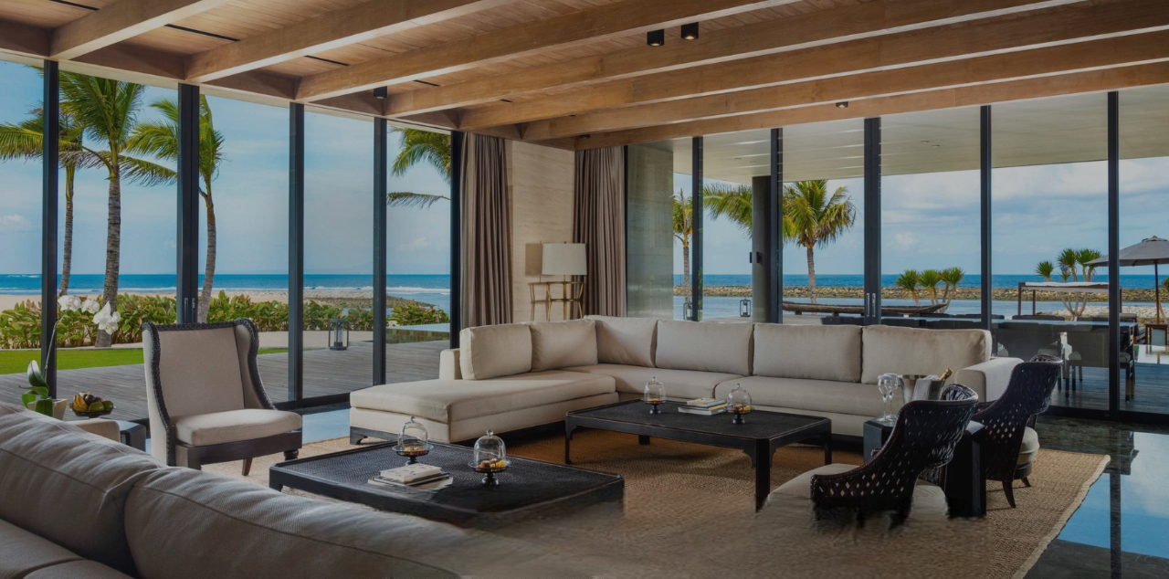 無邊境泳池、客廳、廚房、餐廳、直通海灘