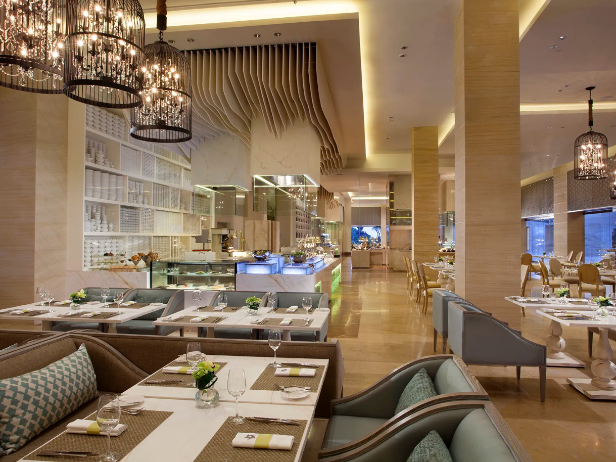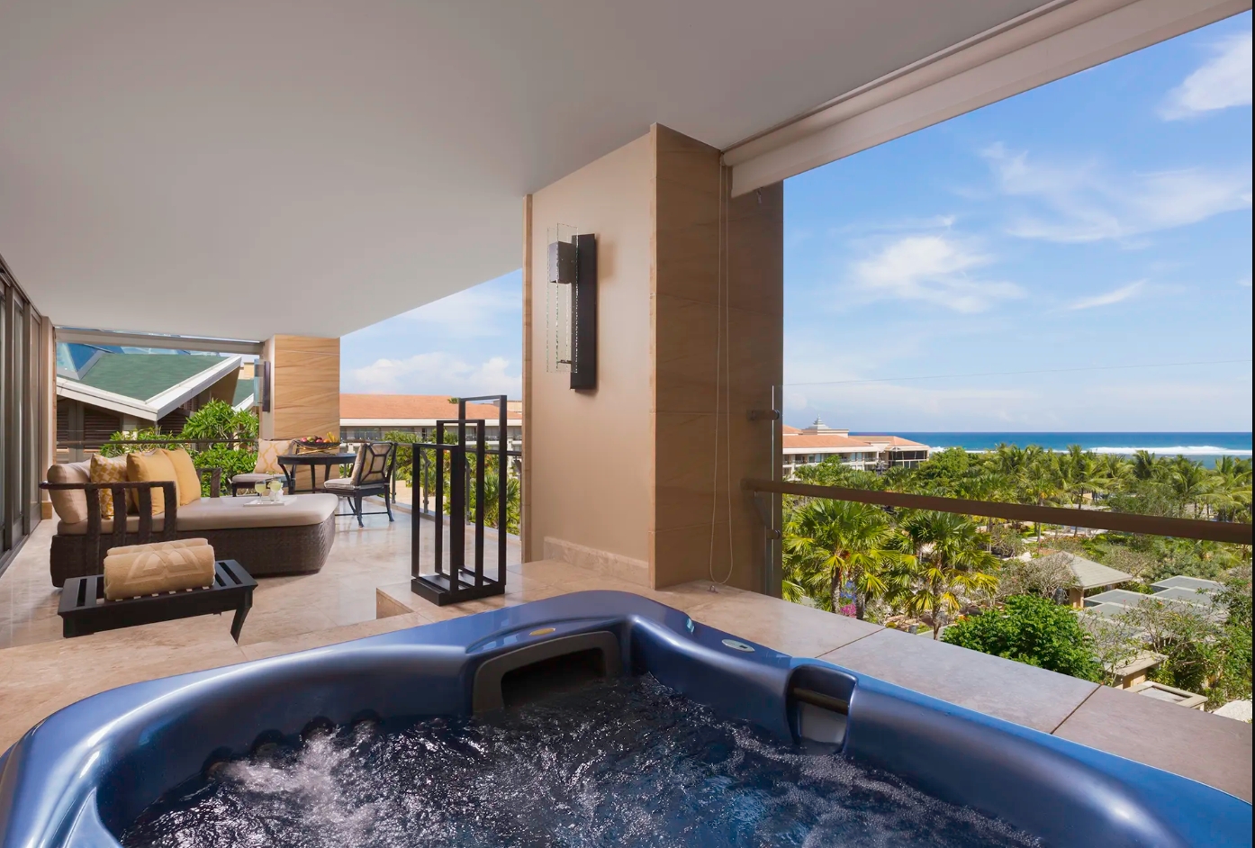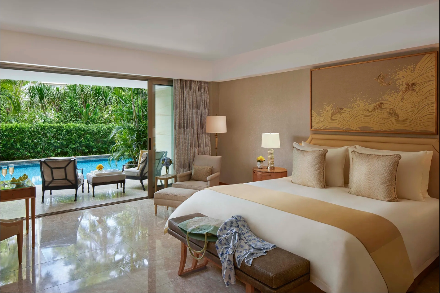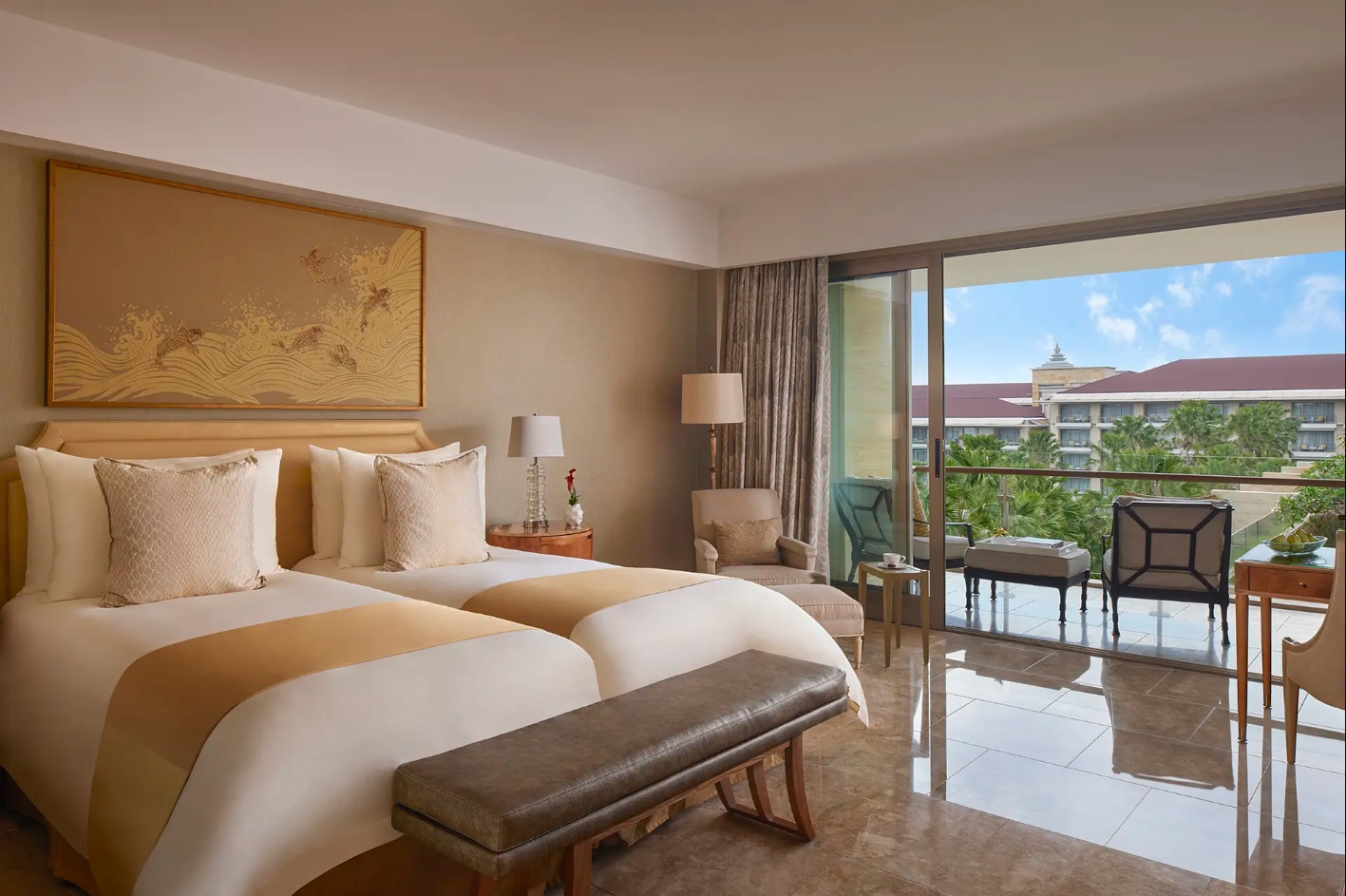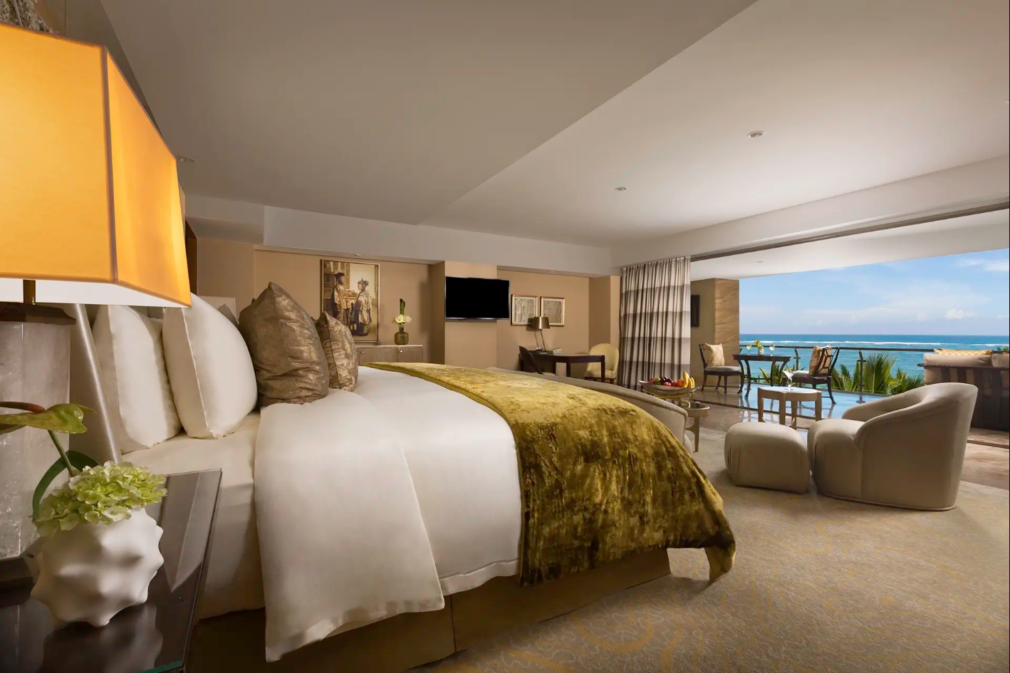 客房設計簡約大器,延續峇里島的自然元素,從陽台即可欣賞壯闊海景或翠綠花園。飯店內設有多間國際級餐廳,無論是義式料理、粵菜佳餚,還是精緻下午茶,皆能滿足不同味蕾。