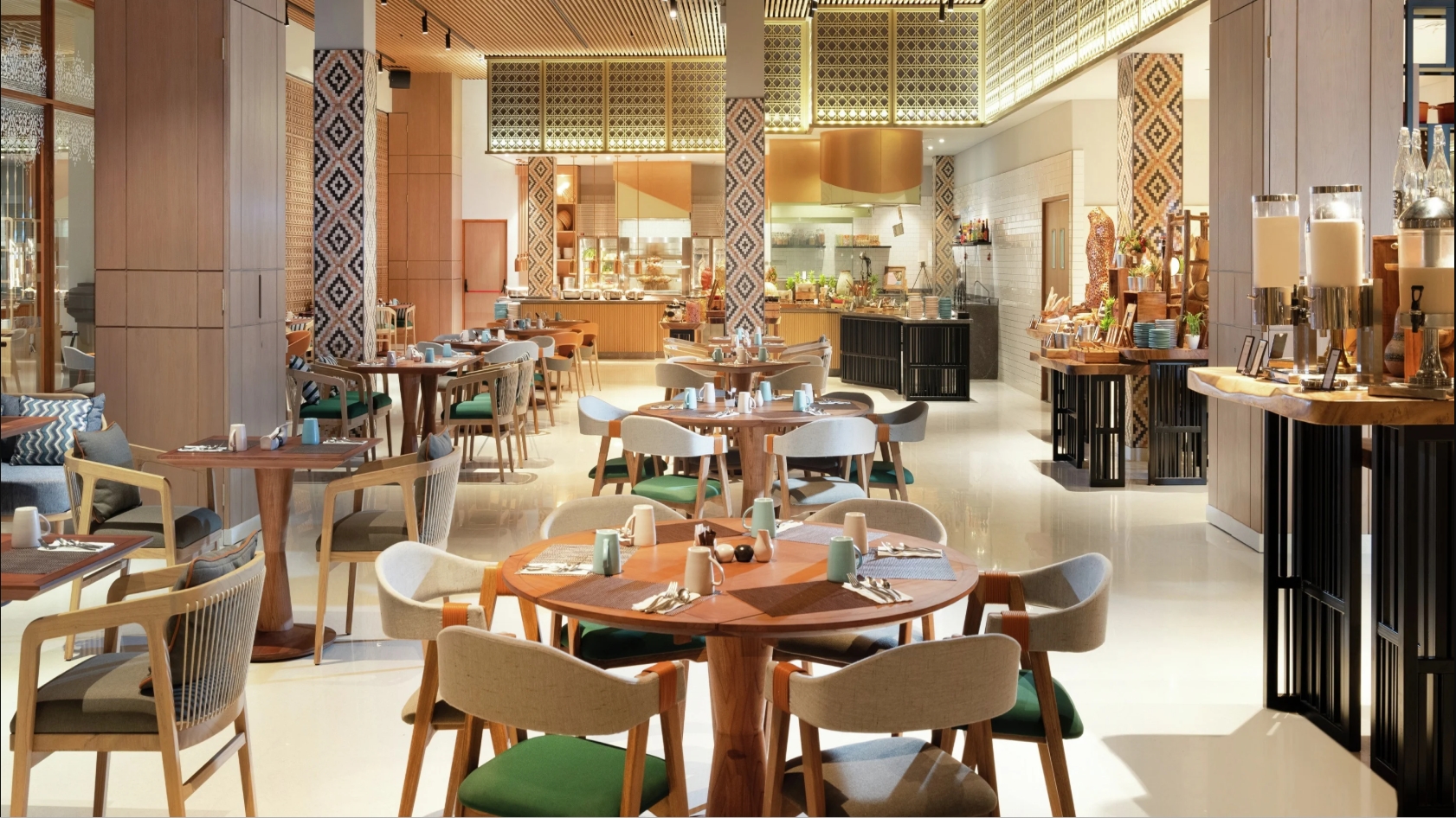 2. 優質餐飲體驗:飯店內設有 5 間風格各異的餐廳與酒吧,外加一間精緻熟食部,匯聚全球美味。從坐擁海景的歐式海鮮餐廳、融合當地特色的巴厘創意料理,到座落在沙灘邊的露天餐廳,每一處都是視覺與味覺的雙重饗宴。此外,還有輕鬆自在的酒吧空間,提供多樣輕食與飲品,讓賓客在悠閒氛圍中小酌片刻,享受南島度假的愜意時光。
