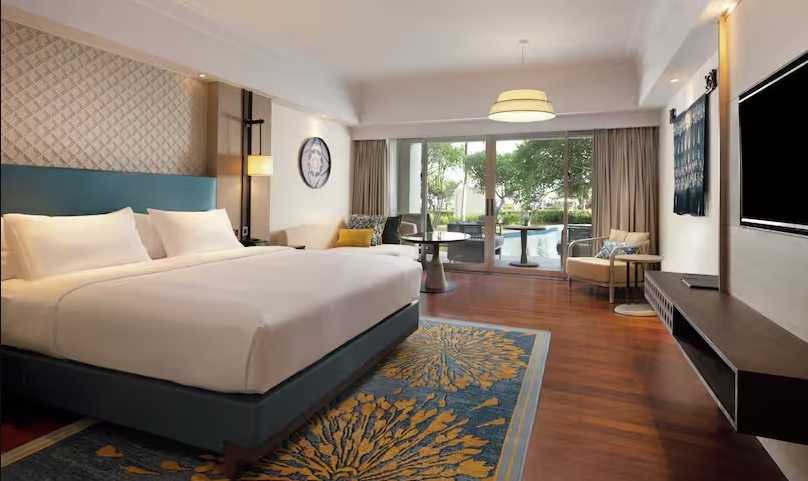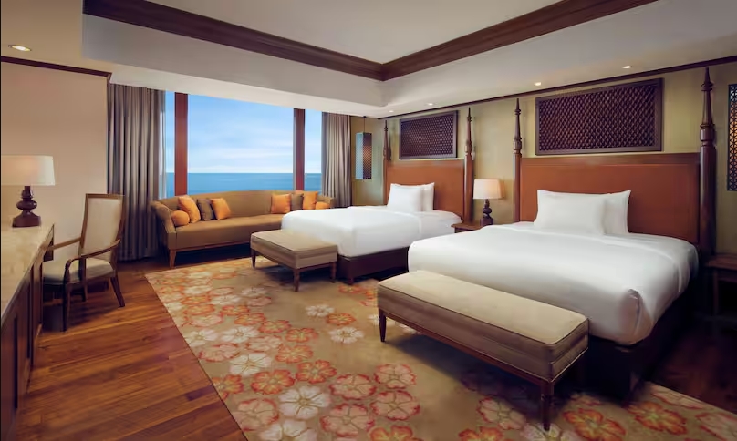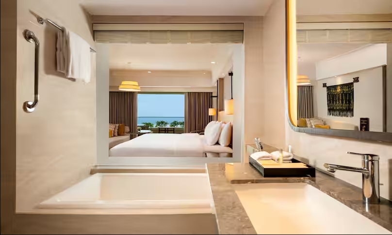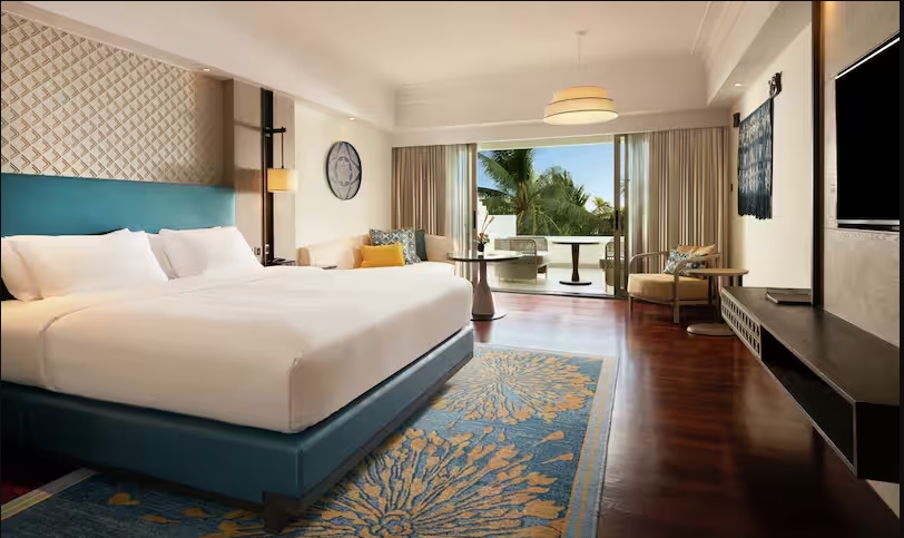 1. 舒適的客房:擁有約408間客房,包括標準客房、套房與獨立Villa。所有房型均設有私人陽台或露臺,多數為花園或海景。衛浴多採大理石設計,附深浸浴缸與淋浴間。