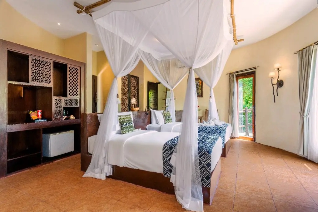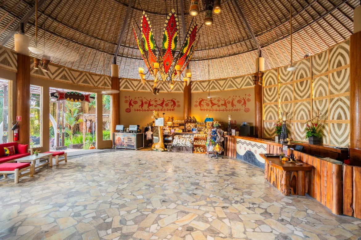 1. 非洲村落風格設計:飯店擁有 45 間仿傳統非洲小屋建築風格的獨立客房,搭配私人露天露台,結合文化意象與現代舒適。