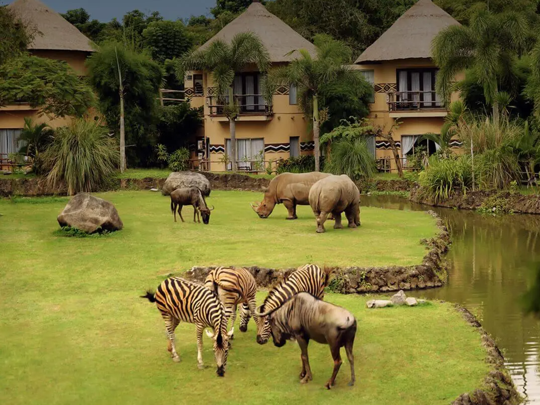5. 野生動物近距離接觸體驗:從房間陽台即可見斑馬、犀牛、長頸鹿等動物自由漫步,無需出門,即可感受野性呼喚。