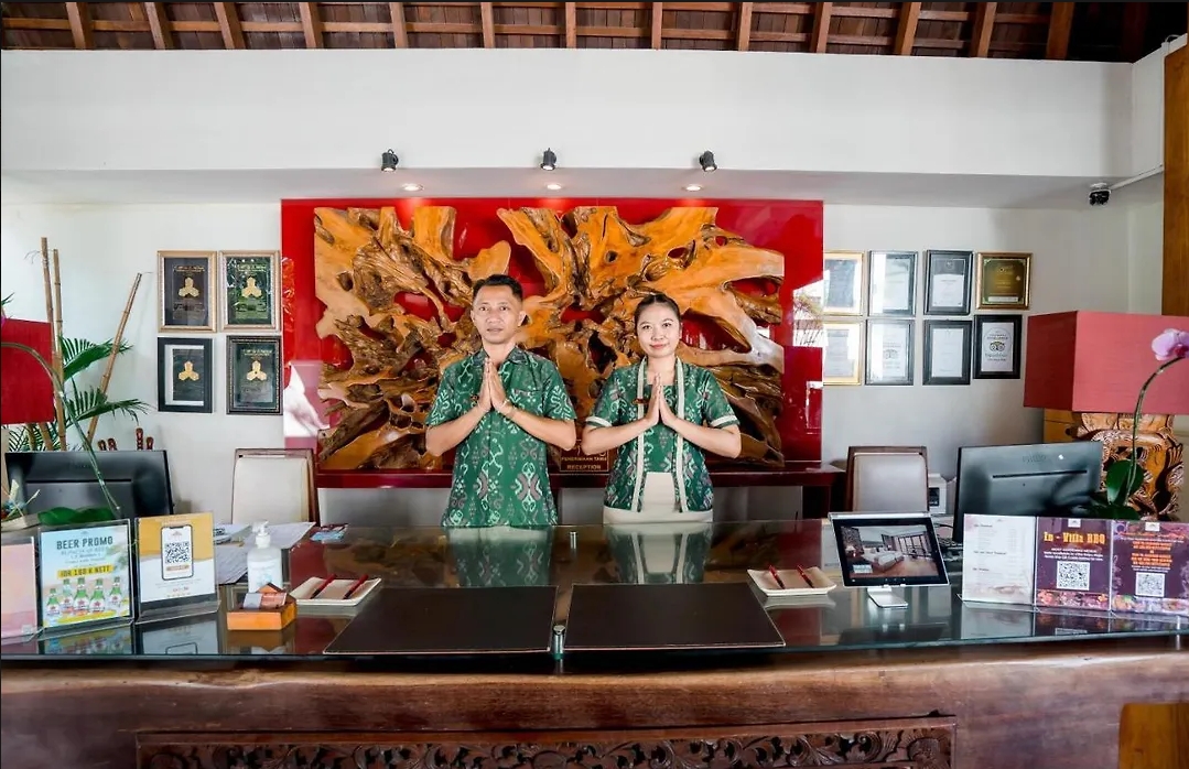 “Kayu Raja”——以木為王的自然設計哲學 「Kayu Raja」在印尼語中意為「樹木之王」,整座度假村散發著天然木材的溫潤質感。從木質地板、手工原木家具到精緻的 Karawangan 傳統木雕,每一處細節都體現了自然與工藝的完美結合。
