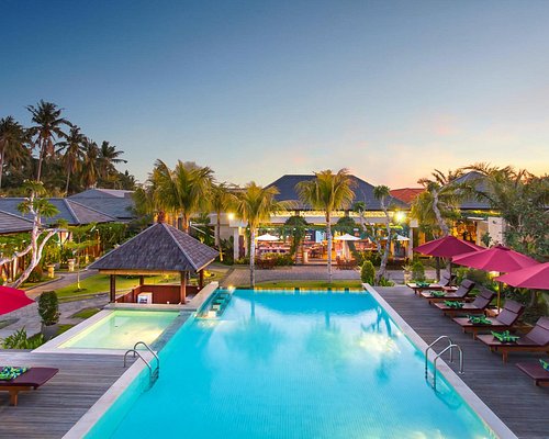 - 位於:當地四星飯店隱匿於巴里島北部的海岸邊,The Lovina Bali Resort 是一處遠離塵囂的世外桃源。當你踏入這片土地,首先映入眼簾的是那片蔚藍的大海與金色沙灘,海浪輕拍岸邊,仿佛在為你唱著悠揚的海歌。 度假村的設計融入自然,寧靜而優雅。站在泳池邊,眼前是無邊際的碧海與晴空,恍若置身一幅動人的海景畫中。這裡的大型公共泳池,讓你在藍天白雲下放鬆身心,享受巴里島那獨特的度假時光。