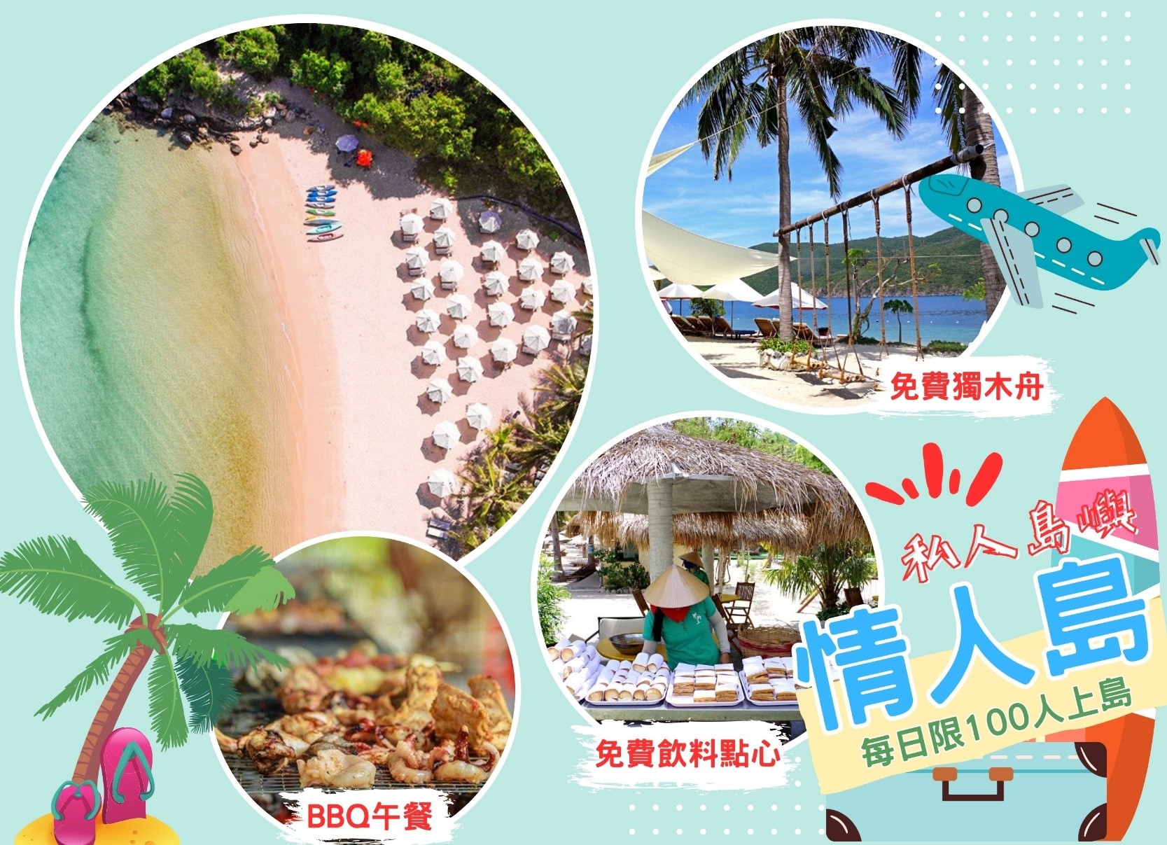 情人島Dam Bay位於芽莊灣海島的一方凈土海天一色,情人島據說是俄羅斯人的私人島嶼,上島的人數每天都僅限100人。這裡有世外桃源仙境般的美景,這裡的海浪沒有激越拍打、只有風平浪靜,就如您待久了城市的車水馬龍、聽久了鼎沸塵囂,就會想找一處幽靜之處讓自己徹底放鬆。 此島位於一個秘境深處,獨家擁有世外桃源仙境般的美景,有低聲細語的海浪聲,輕輕的回繞於山林間,在此您可享受沙灘、陽光、海灣、比基尼、島上美食BBQ啤酒椰子水無限暢飲,讓您擁抱大自然,擁抱大海,讓您擁有一個一輩子難忘的出海之旅。