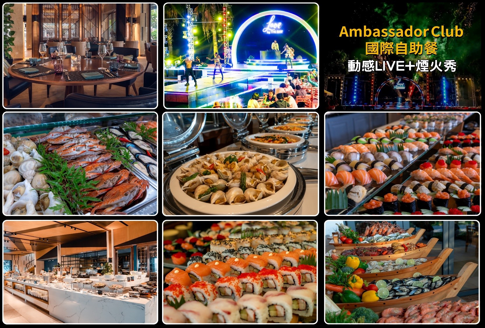 早 酒店內 午 島上BBQ自助餐$15USD 晚 國賓遊艇俱樂部海鮮自助餐+半龍蝦+動感LIVE秀$33USD