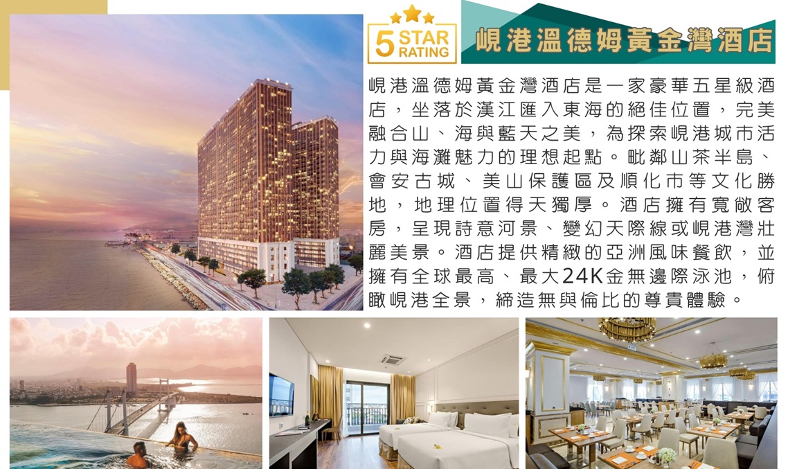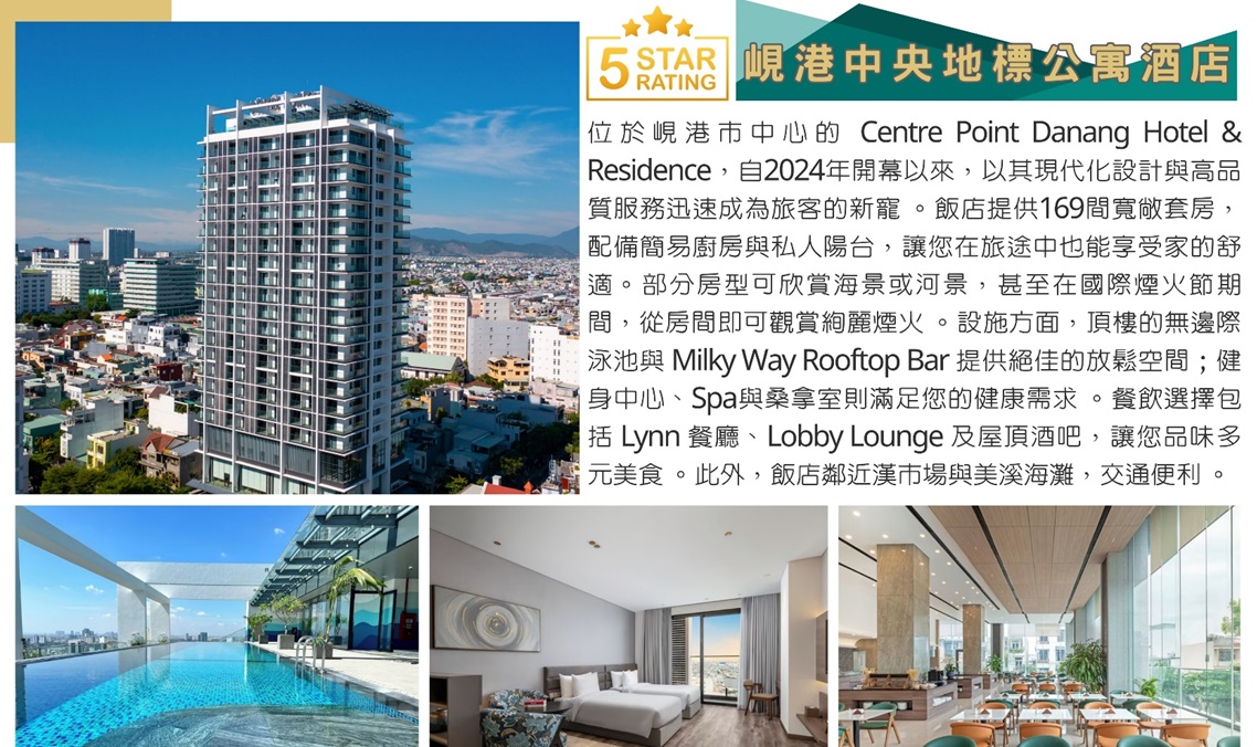 宿 ★★★★★Centre Point Danang Hotel & Residence 或 Wyndham Danang Golden Bay 或 同級