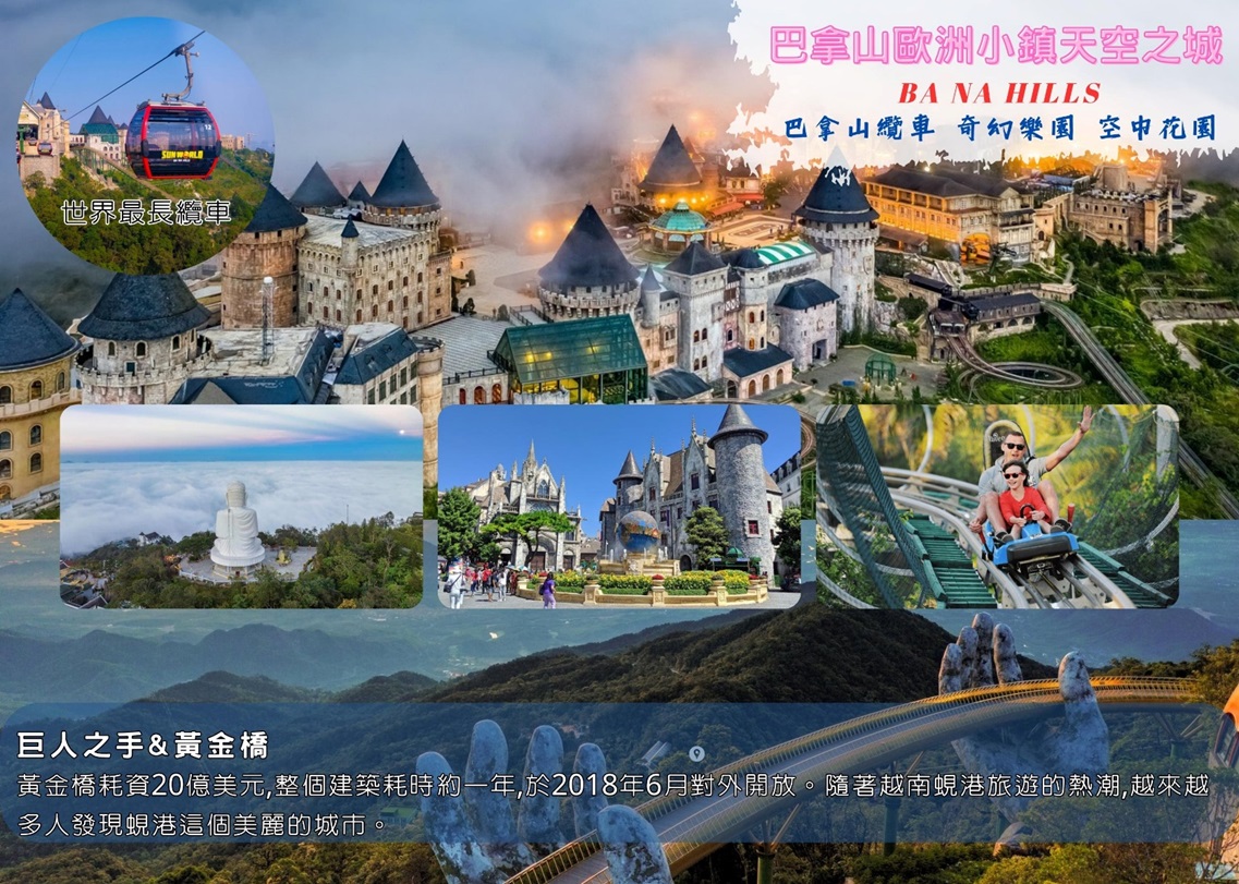 DAY4巴拿山法國山城(搭乘世界最長纜車來回)【黃金橋(2018 最新熱門打卡點)、巴拿山世界三大室內娛樂公園、法國山城、大佛靈應寺、巴拿山小火車】-途經峴港美麗夜色(夜遊龍橋及漢江盼)-峴港