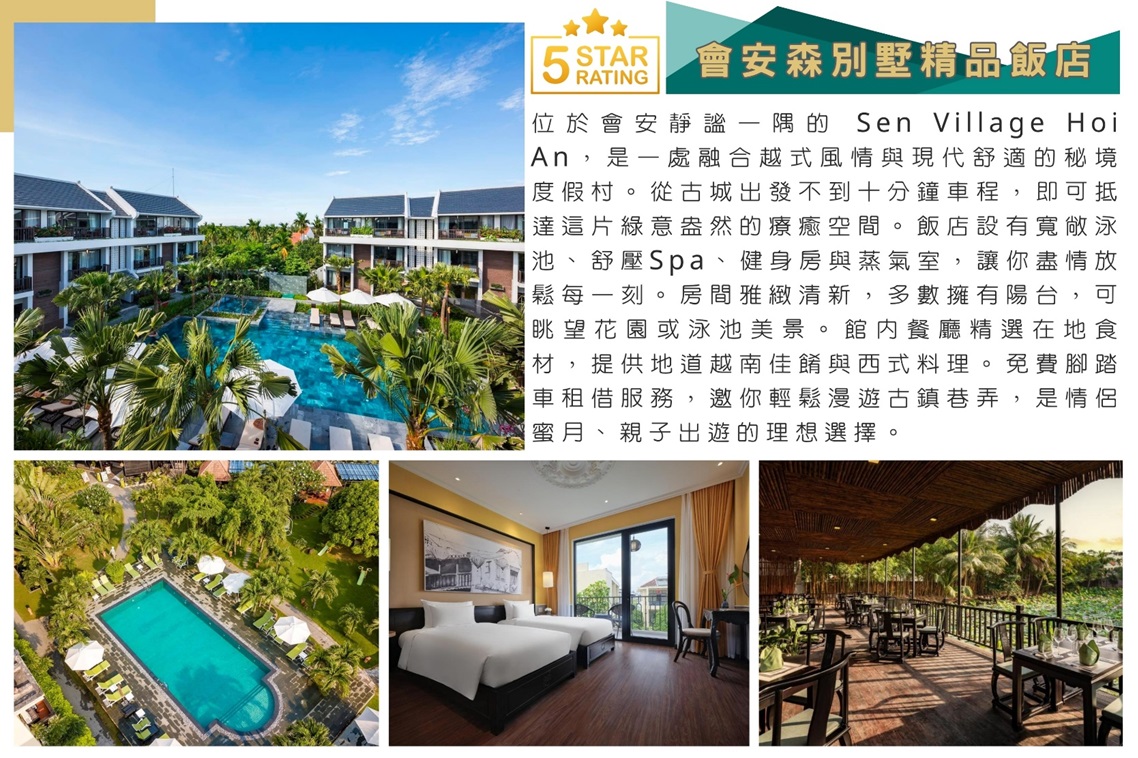 宿 ★★★★★Sen Village Hoi An 或 Bellerive Hoi An Hotel & Spa 或 同級