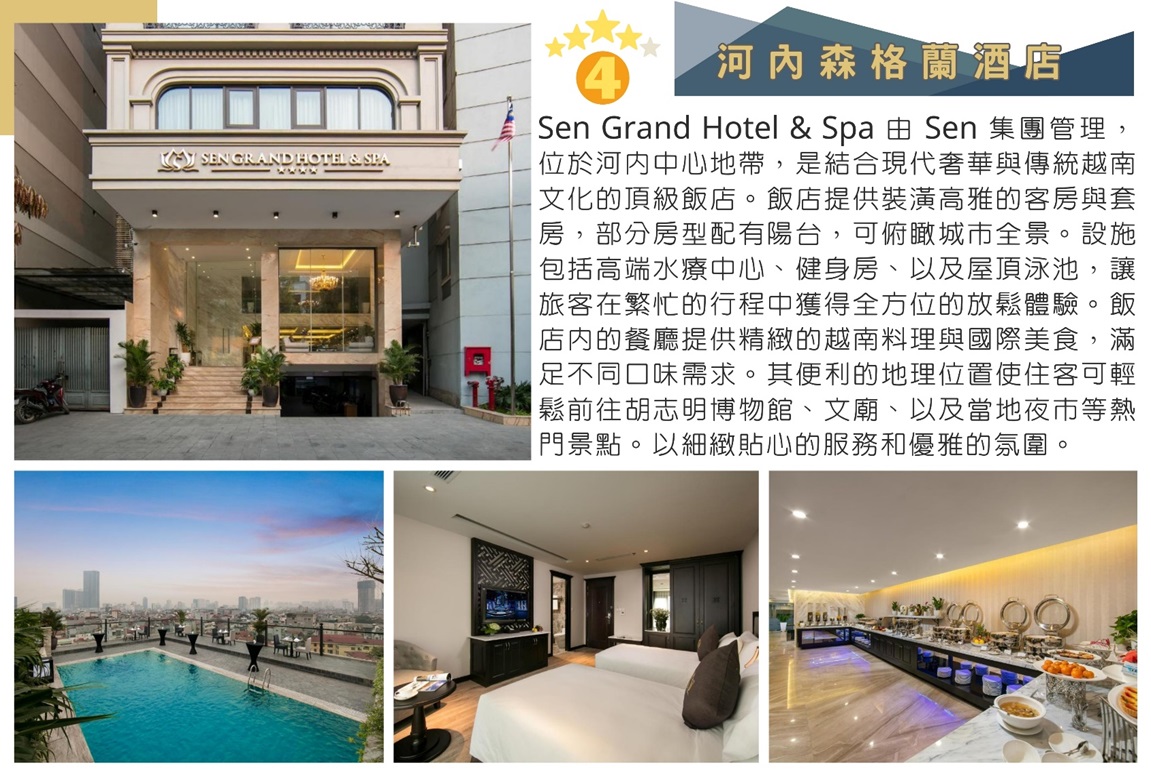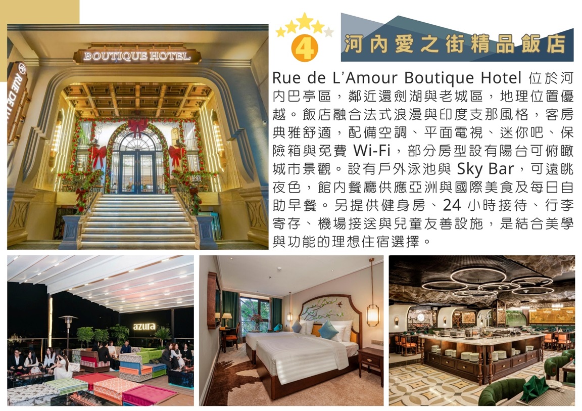 宿 ★★★★河內Rue de L’Amour Hotel 或 Sen Grand Hotel & Spa 或 Gloud Hotel 格魯德飯店 或 同級【二人一房】