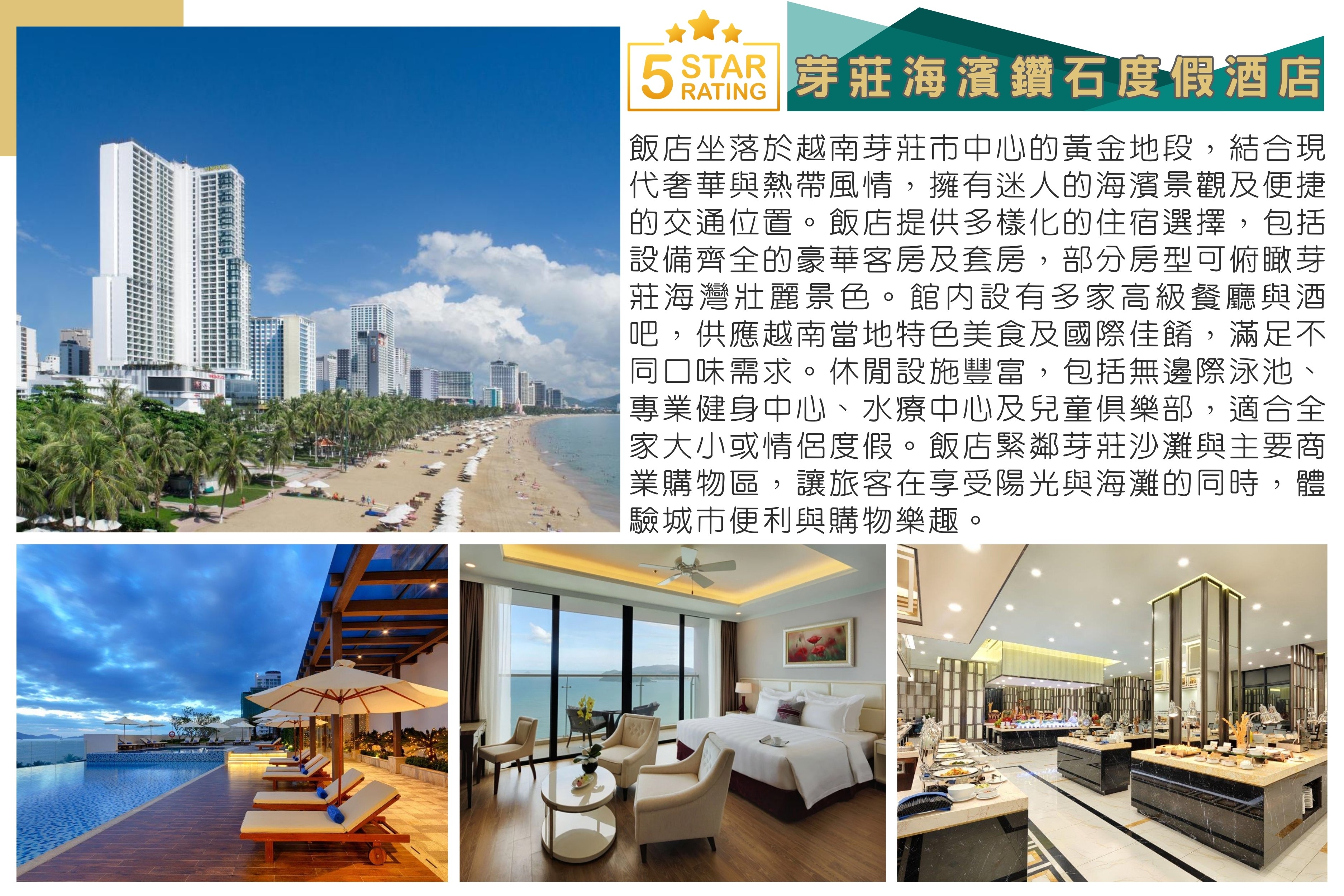 宿 ★★★★★Vinpearl Beachfront Nha Trang 或 Citadines Bayfront Nha Trang 或 December Hotel同級