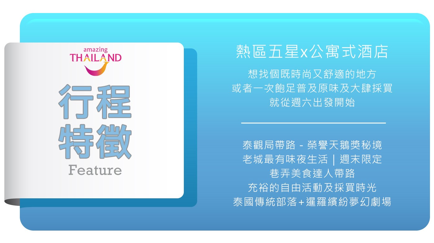 TOUR - 虎哩普吉五星4日~週末狂熱、潮流公寓式酒店X巴東熱區五星、峽谷漂漂河X象徑體驗、米奇林餐盤、繽紛夢幻劇場、古法按摩