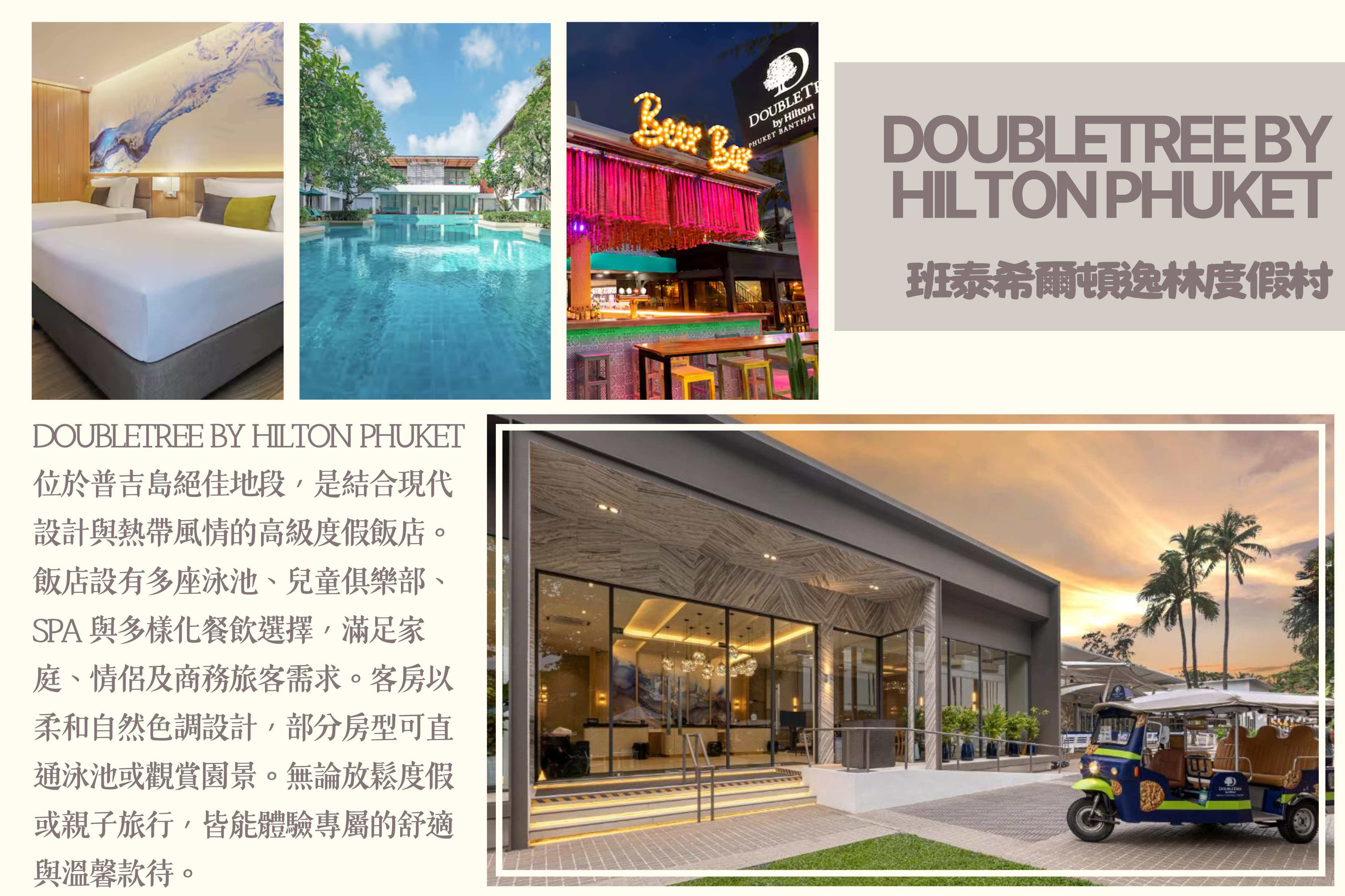 宿 ★★★★★DoubleTree by Hilton 希爾頓逸林酒店 或 Radisson RED Patong Beach 巴東海灘麗芮飯店 或 M Social Phuket 千琇悅酒店 或 同級