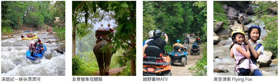 DAY2【泰觀局官方秘境】峽谷漂漂河-大象互動式體驗-叢林越野ATV-泰山滑索-臥佛岩洞-水果市集(贈送每人一顆椰子)-泰國傳統部落+暹羅繽紛夢幻劇場